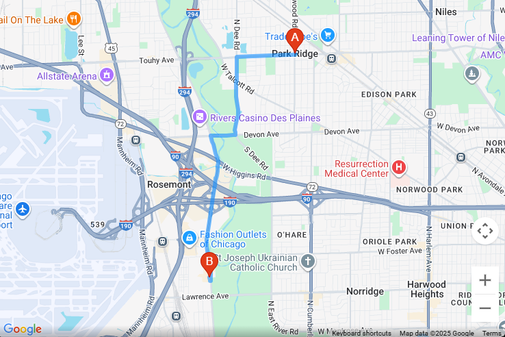 The distance between Evanston, Illinois and Axeclusive Axe Throwing & VR Lounge located at 4938 River Road, Schiller Park, Illinois is 17.6 miles along I-94 E according to Google Maps. It will take 35 minutes to get there by car.